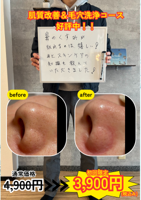 新メニューの「毛穴洗浄」、おかげさまで多くのお客様からご好評をいただいております!😊